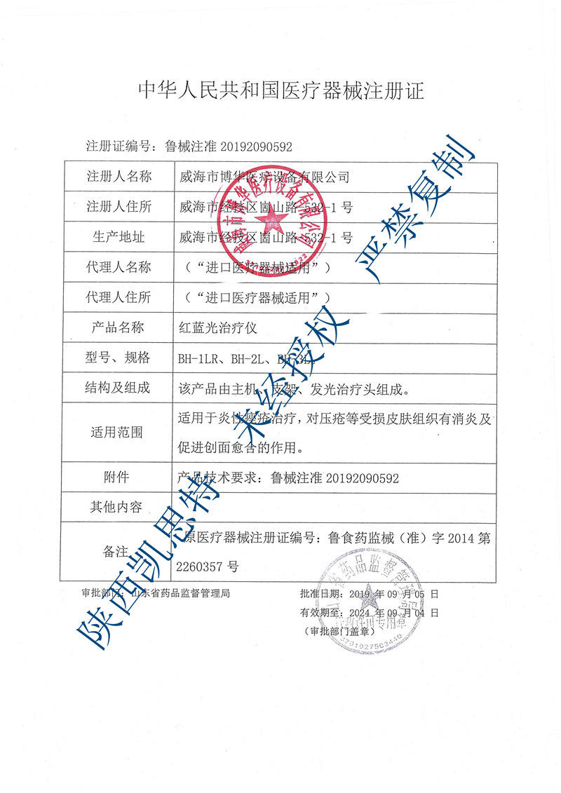 医疗器械注册证编号:鲁械注准20192090592